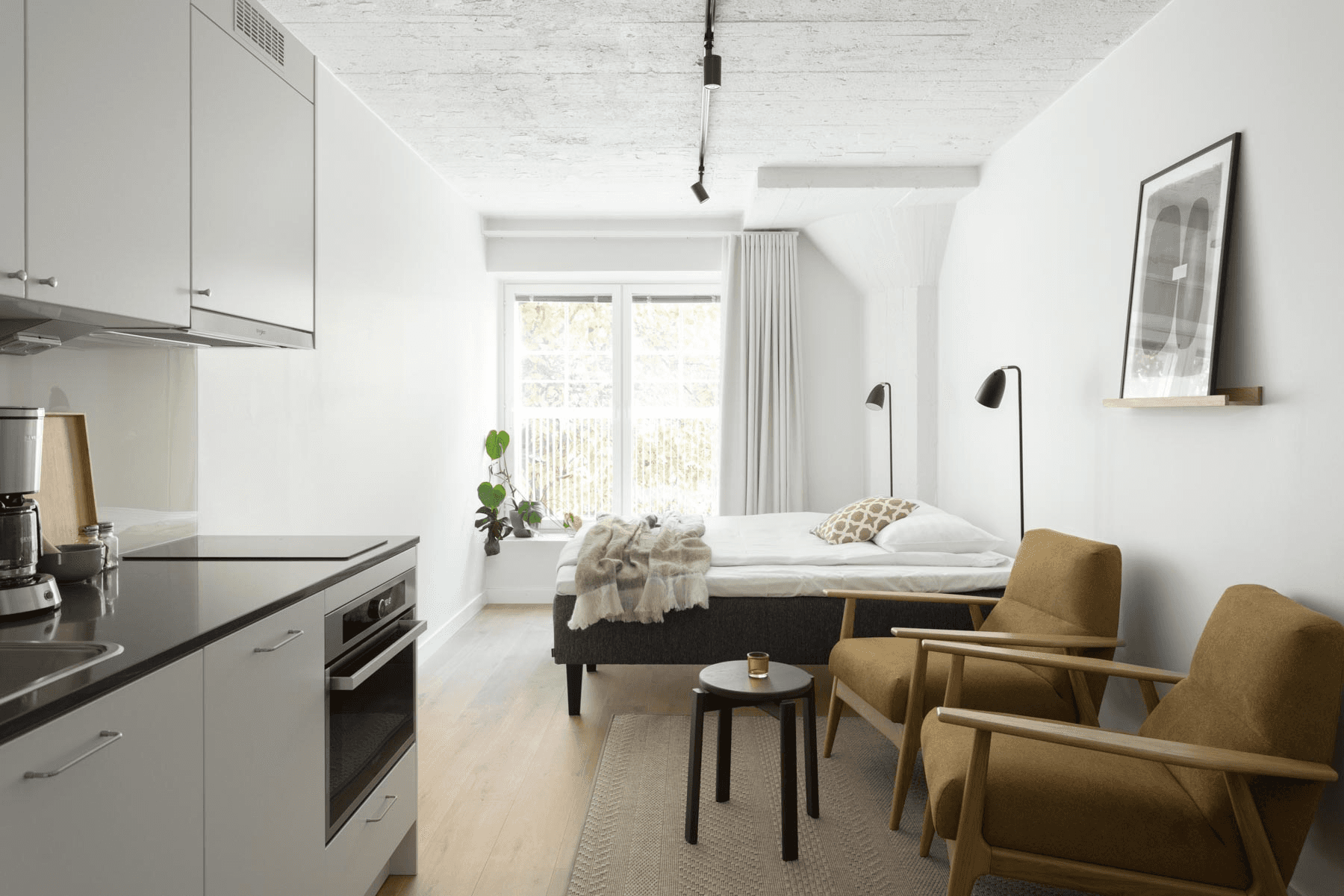 房內配備精選芬蘭設計品牌廚具、寢具、餐具
